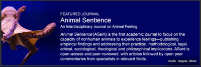 Featured Journal: Animal Sentience | An Interdisciplinary Journal on Animal Feeling | Animal Sentience [ASent] is the first academic journal to focus on the capacity of nonhuman animals to experience feelings—publishing empirical findings and addressing their practical, methodological, legal, ethical, sociological, theological and philosophical implications. ASent is open-access and peer-reviewed, with articles followed by open peer commentaries from specialists in relevant fields.